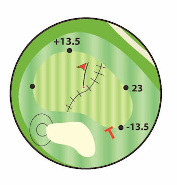 Aanvallende keuzes vereisen hier uitstekende slagen. Geef jezelf een extra slag om naar de green te komen om de hoge nummers te ontlopen.