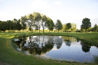 Het water afsnijden kan voor de longhitters leiden tot een goede birdie kans maar wat korter en recht van de tee is nooit een slechte keuze.