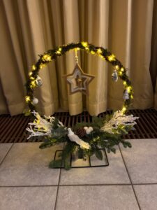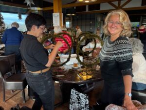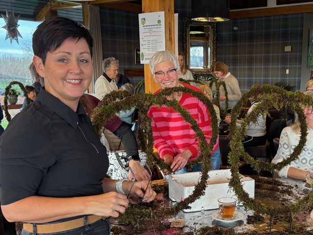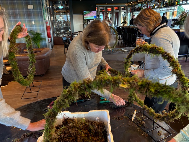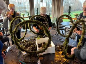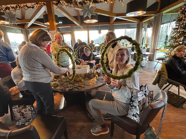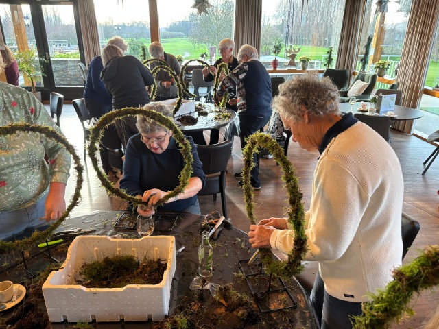 Ook dit jaar gingen een aantal dames onder leiding van Edwin aan de slag om zelf een Kerstarrangement te maken.