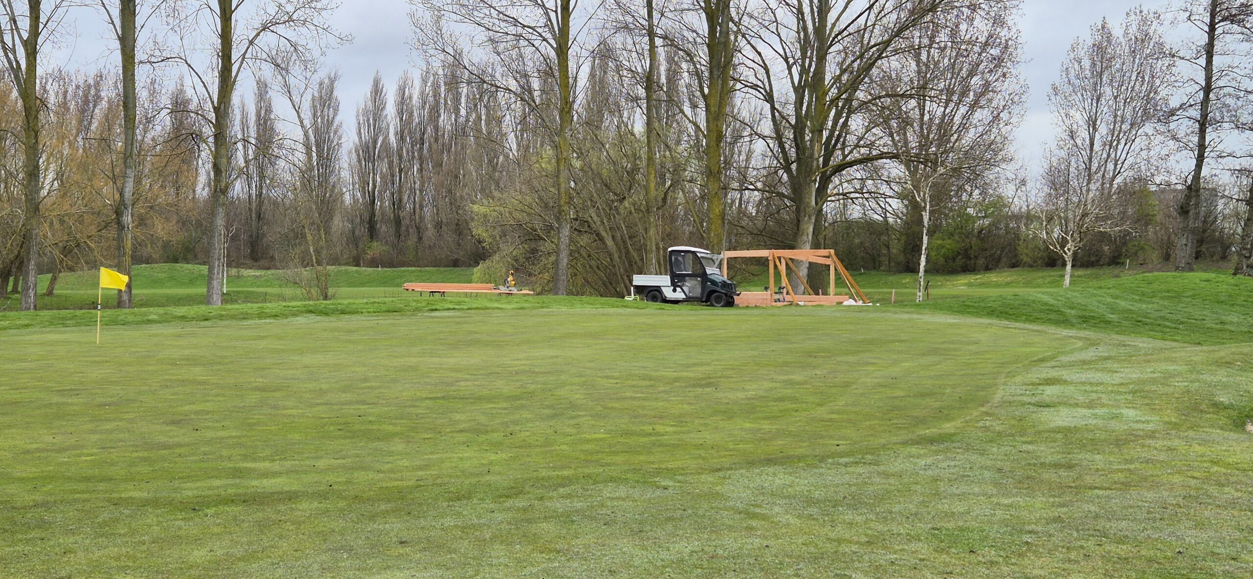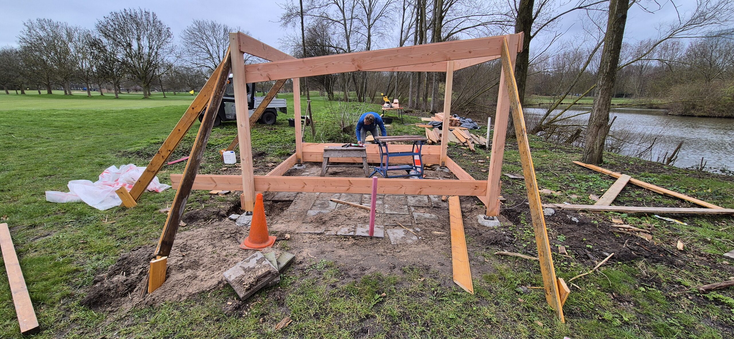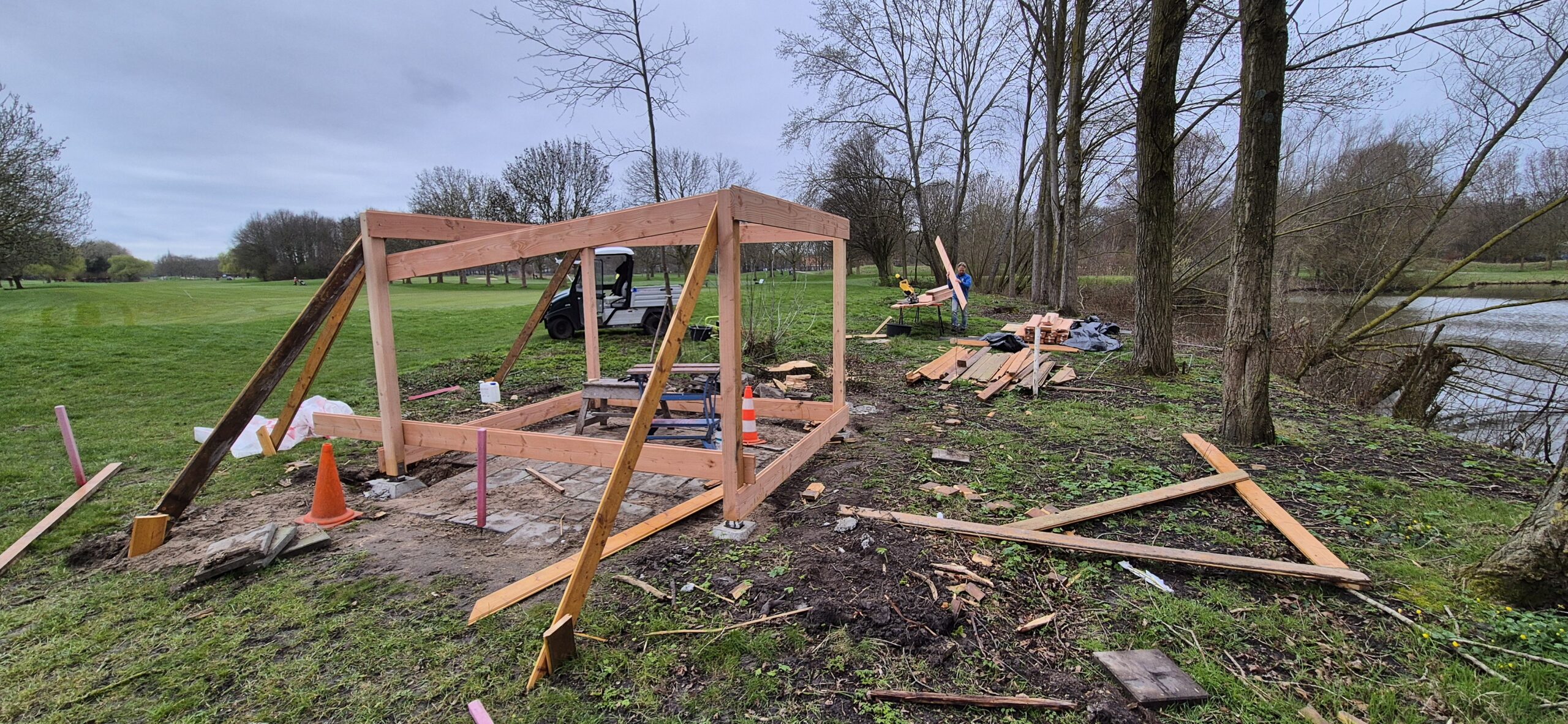 Momenteel wordt door Aad gewerkt aan de bouw van een nieuwe schuilhut op hole 3 / hole 15