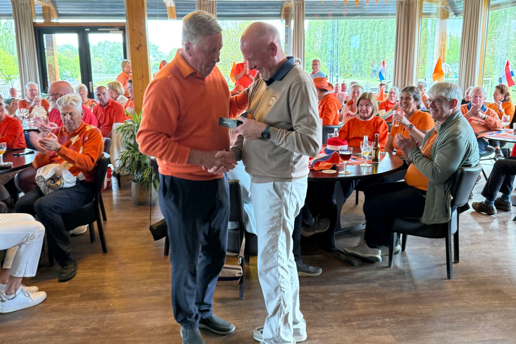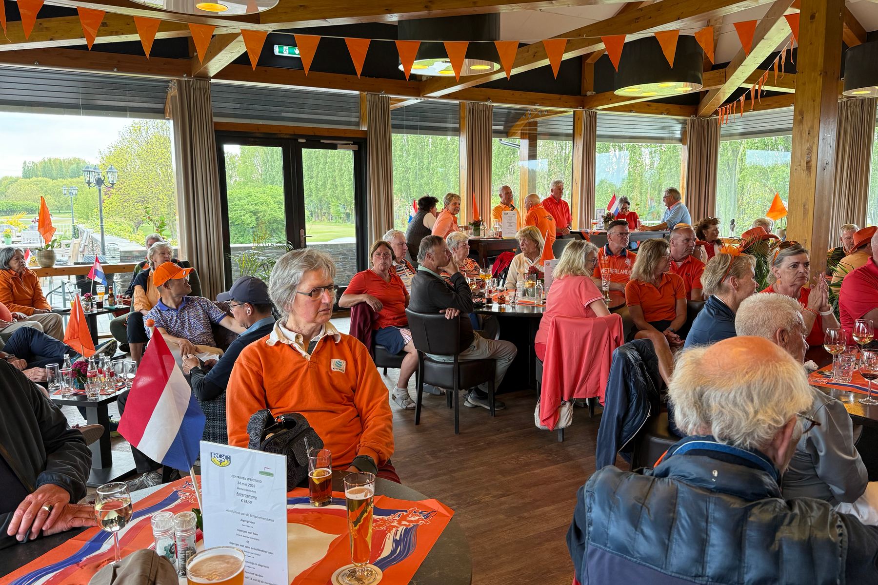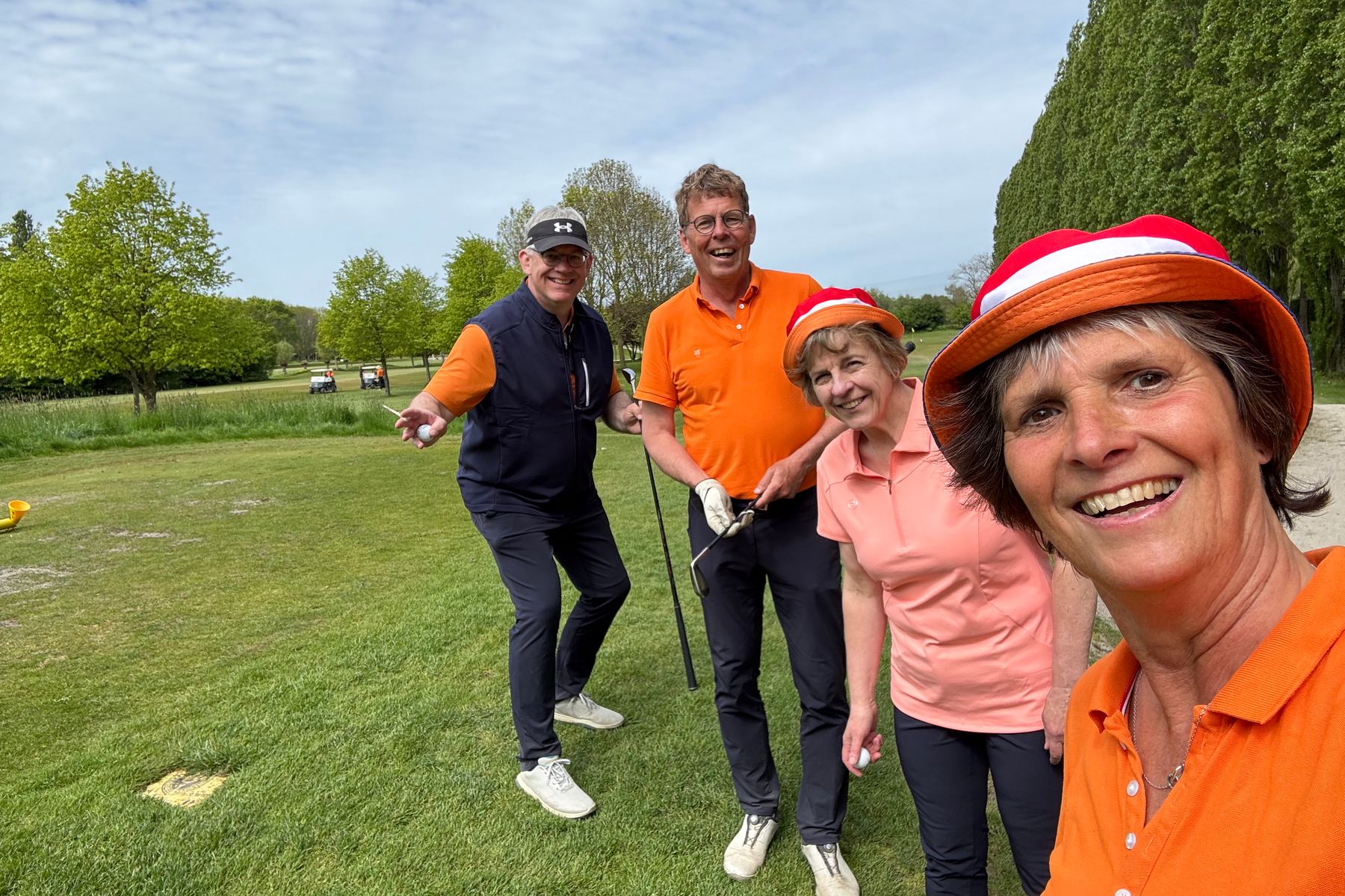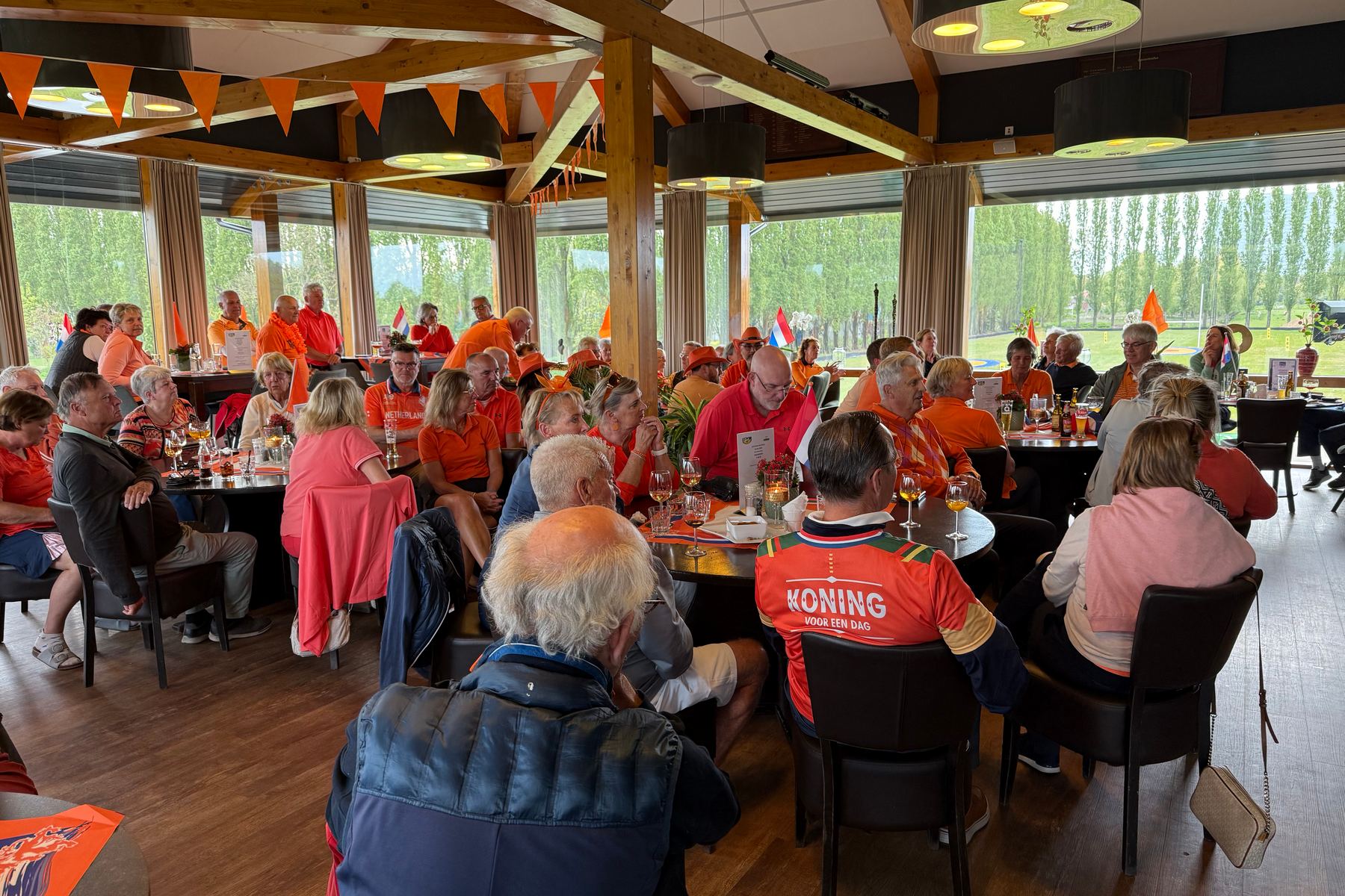 Wat was de Koningsdagwedstrijd 2026 een succes! Er was een deelname van 96 leden en ieder had gehoor gegeven aan de oproep om zoveel mogelijk rood-wit-blauw-oranje in de baan te laten ‘shinen’. De wedstrijdvorm was ook dit keer een shotgun 4-bal, Texas Scramble. De start was om 13.00 uur met flights van 3 of 4 personen!!! Er werd gestreden om de neary dames op hole 9, neary heren op hole 12 en een team leary op hole 1 (met 2 slagen op de green)!