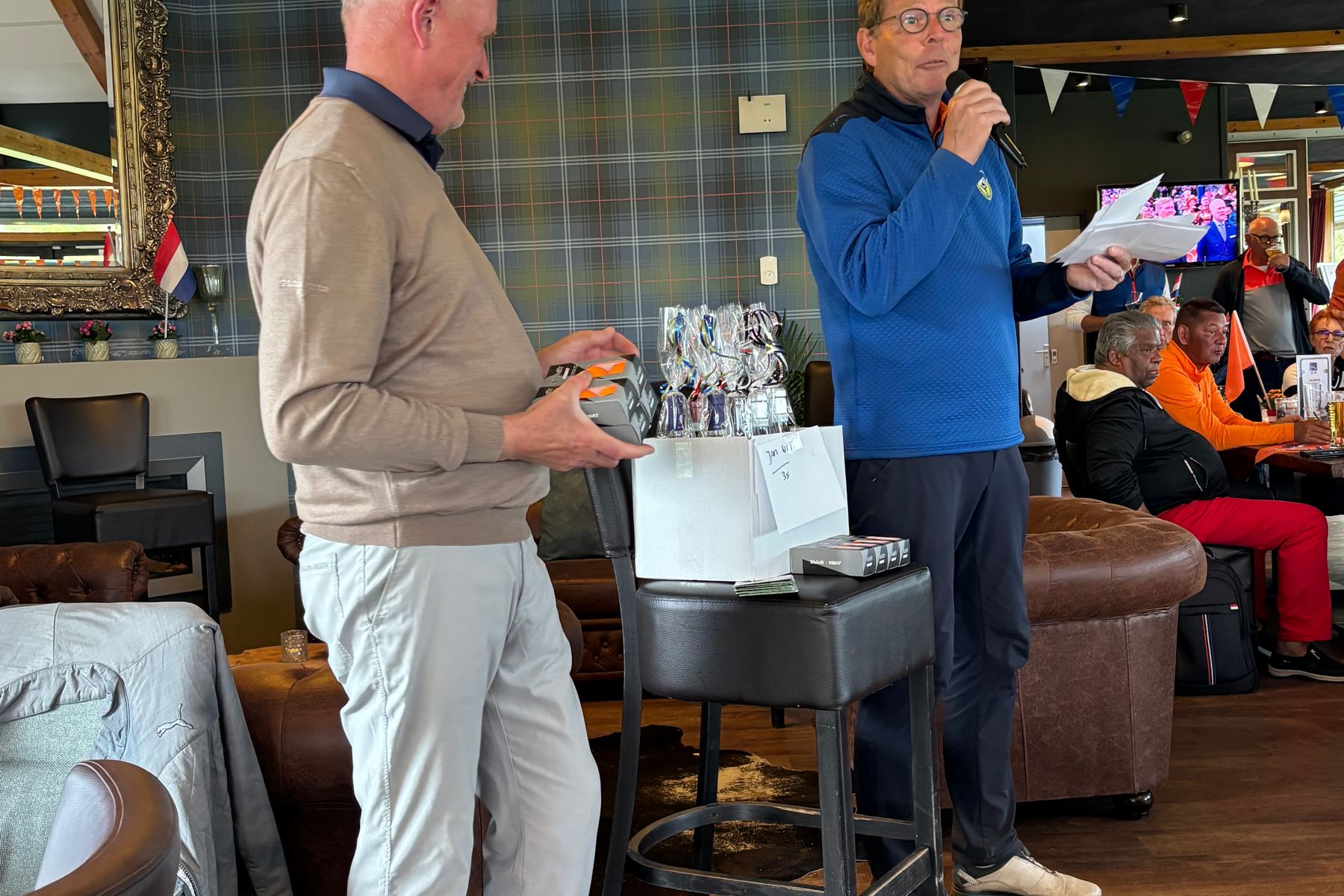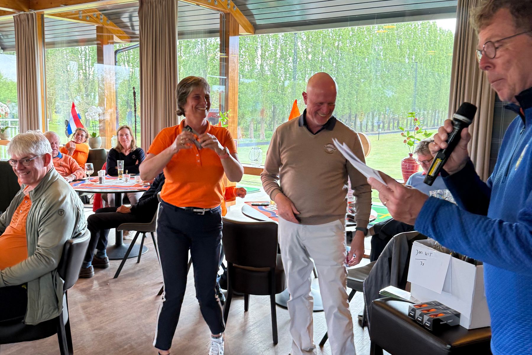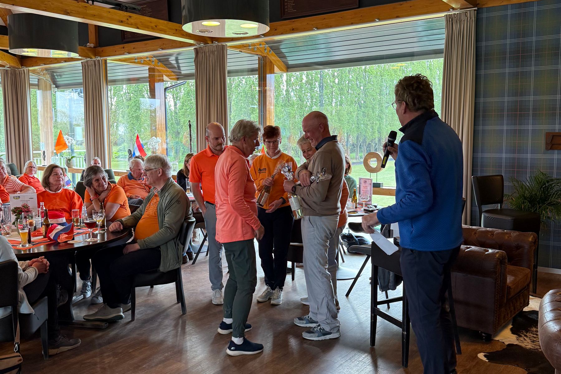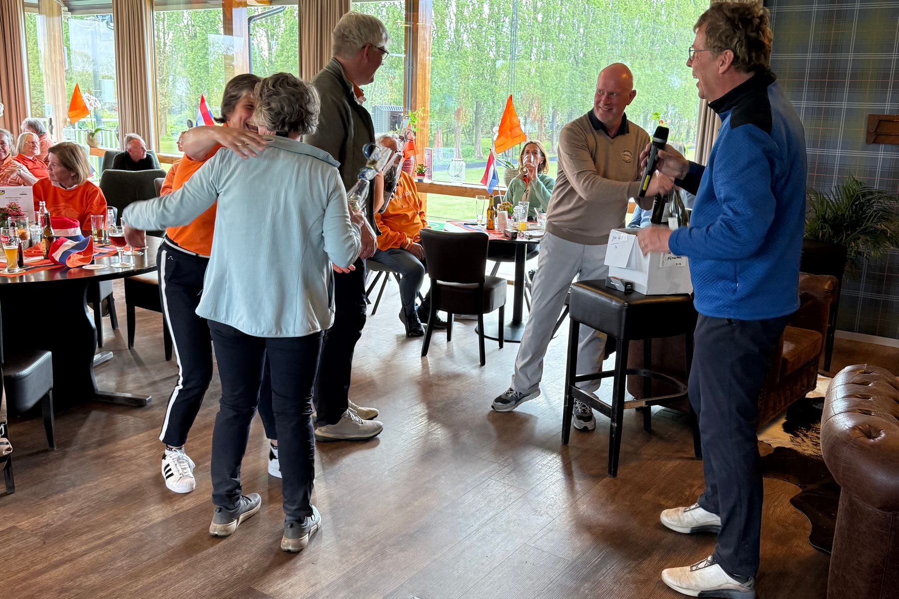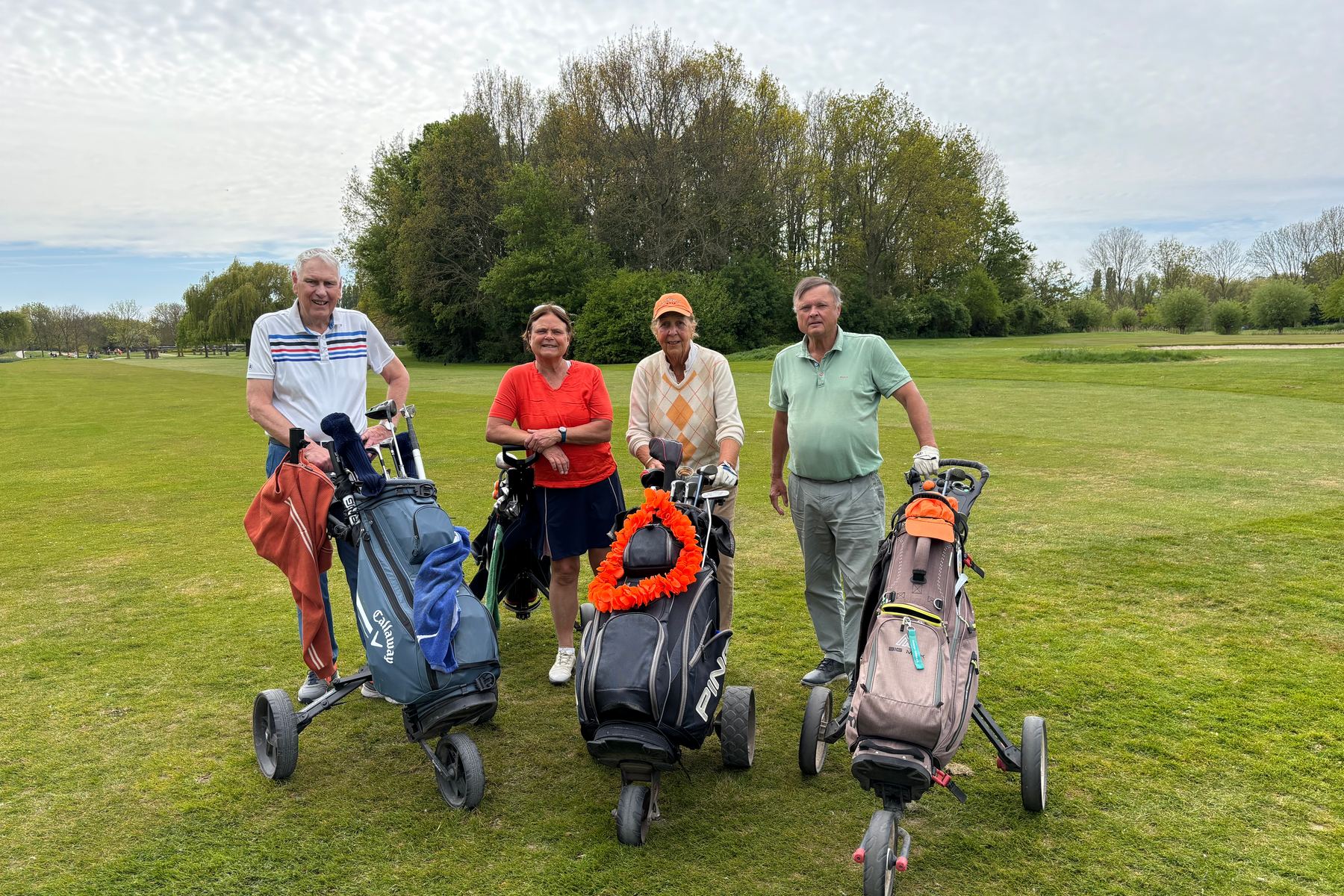 Wat was de Koningsdagwedstrijd 2026 een succes! Er was een deelname van 96 leden en ieder had gehoor gegeven aan de oproep om zoveel mogelijk rood-wit-blauw-oranje in de baan te laten ‘shinen’. De wedstrijdvorm was ook dit keer een shotgun 4-bal, Texas Scramble. De start was om 13.00 uur met flights van 3 of 4 personen!!! Er werd gestreden om de neary dames op hole 9, neary heren op hole 12 en een team leary op hole 1 (met 2 slagen op de green)!