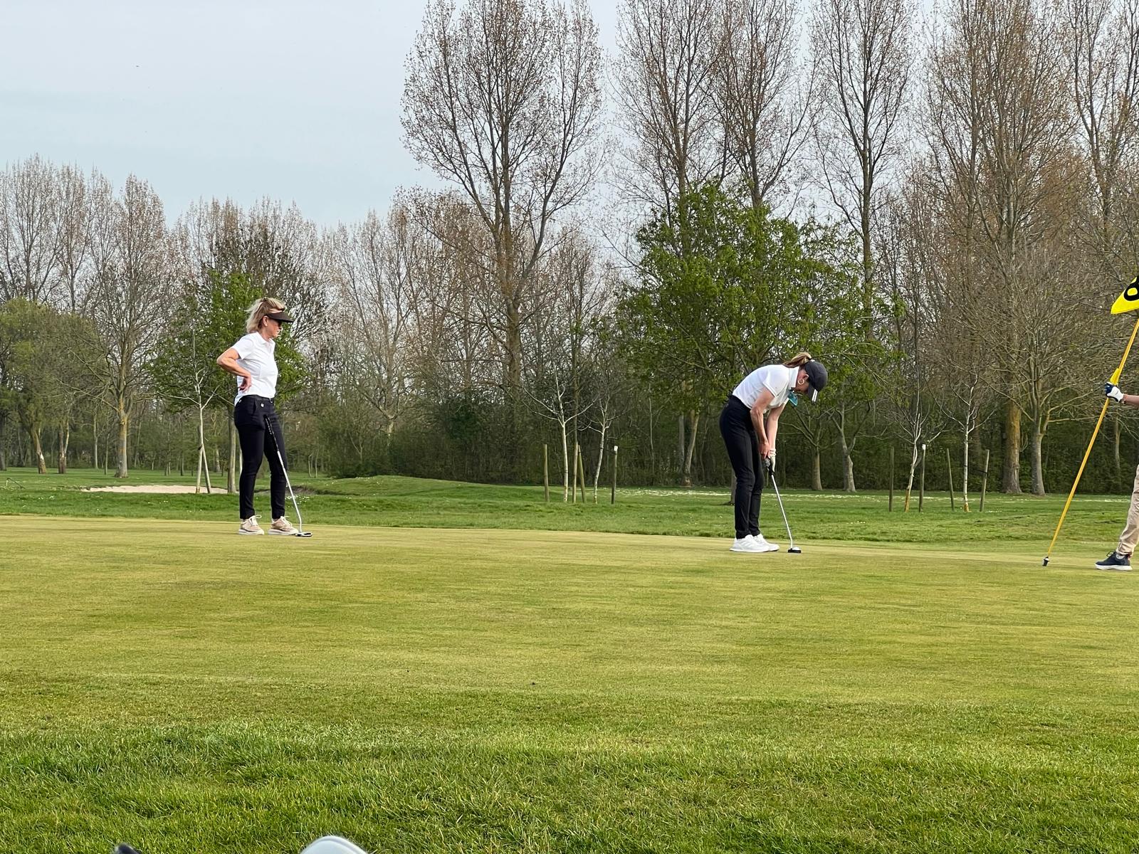 Op de laatste hole wachtten we het 3e paar (nieuwe leden) op. Met een brede glimlach liepen ze van de green af.